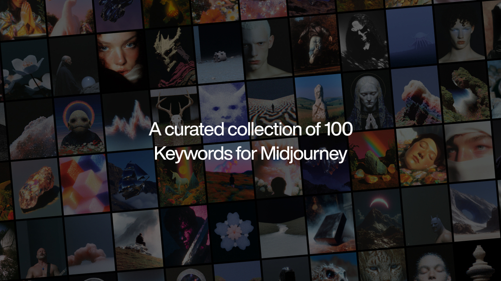 A curated set of 100 unique and powerful keywords to help you generate aesthetic, conceptual, and visually refined imagery in Midjourney. These are the same types of words I use to craft the visual vibe you see on my Instagram — now packaged for your own explorations.