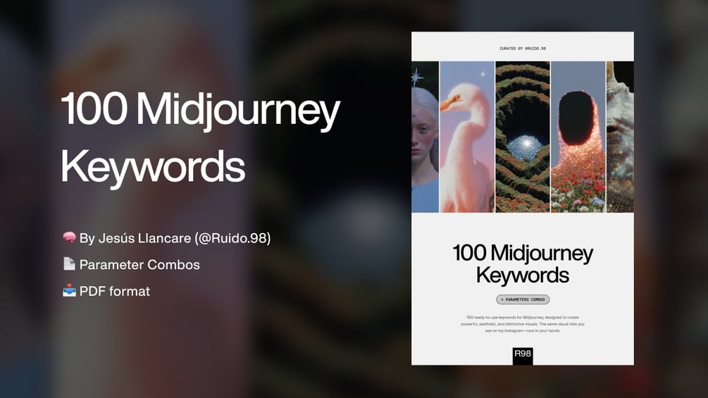 Una colección curada de 100 keywords únicas y poderosas para ayudarte a generar imágenes estéticas, conceptuales y visualmente refinadas en Midjourney. Son las mismas palabras que uso para construir el estilo visual que ves en mi Instagram — ahora listas para que las explores a tu manera.